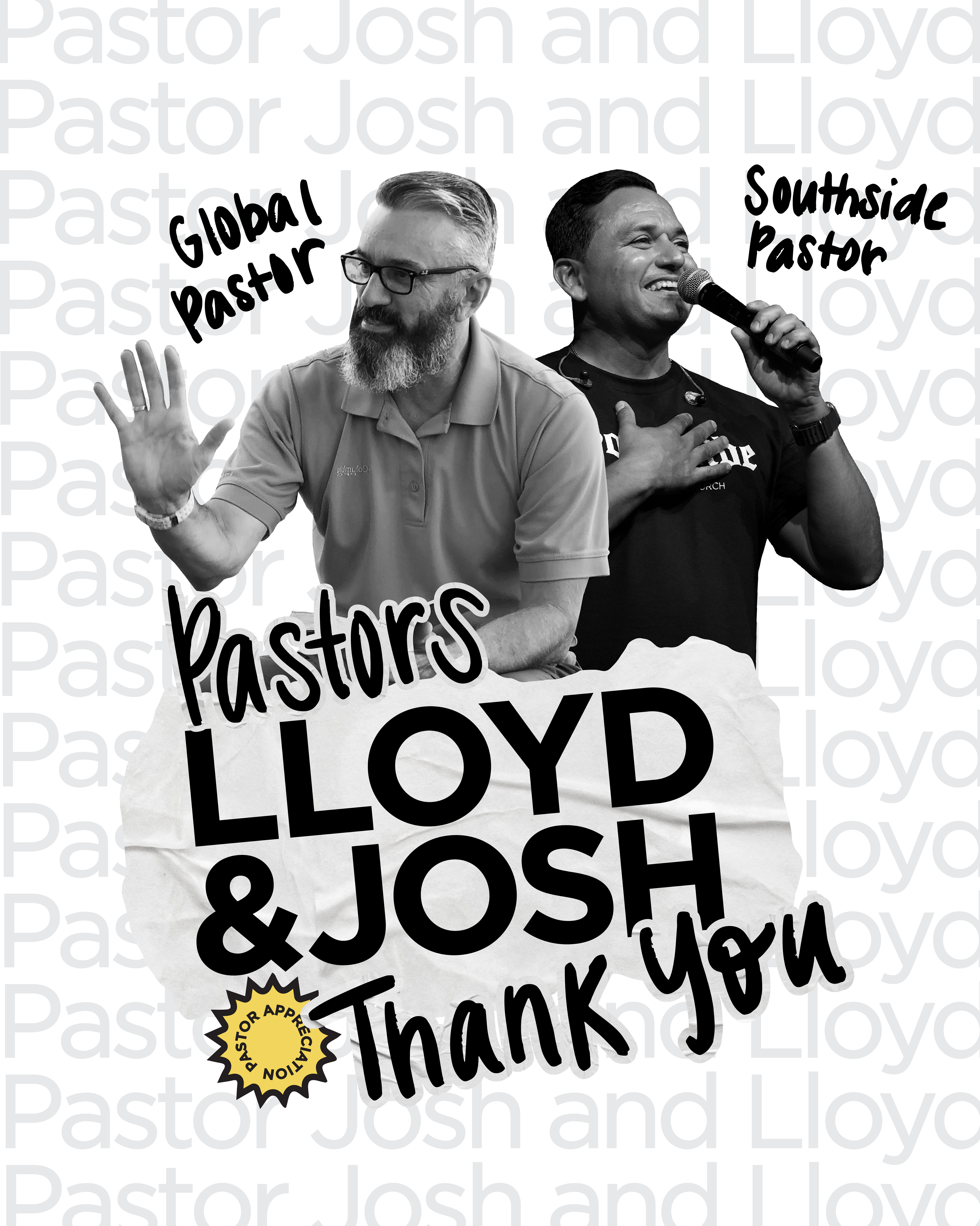 This pastor appreciation series was a week long series that featured one group of pastors each day. The series utilized framed elements, cutout photography, handwritten typography, repeating type background and a torn wrinkled paper texture.